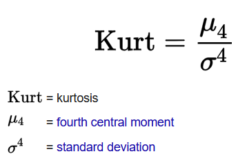 - Formula: Kurtosis =