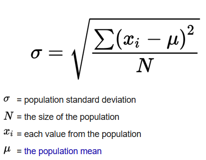 - Formula: Standard Deviation (SD) =