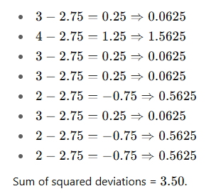 Deviations from mean and squared deviations:
