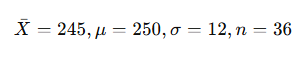 A consumer group randomly samples 36 packets and finds the mean weight = 245g, with ฯ = 12g.