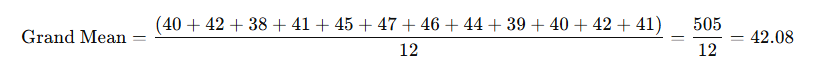 Overall Mean (Grand Mean) = (Sum of all values) / (Total N)
