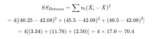 | Between Groups | Variation due to treatment or differences in group means | SSBetweenSS_{Between}SSBetweenโ |