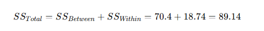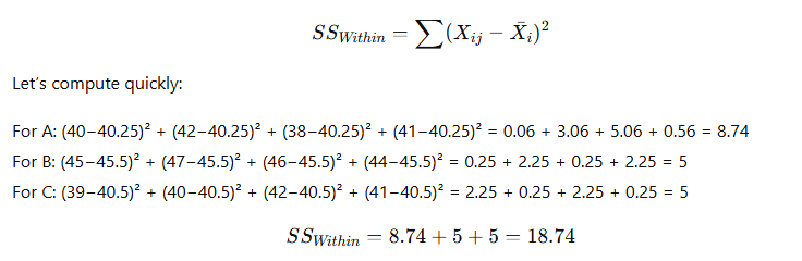 | Within Groups | Variation within each group (random error) | SSWithinSS_{Within}SSWithinโ |