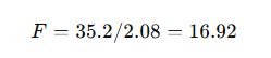 F = sโยฒ / sโยฒ = 2.5 / 1.2 = 2.08